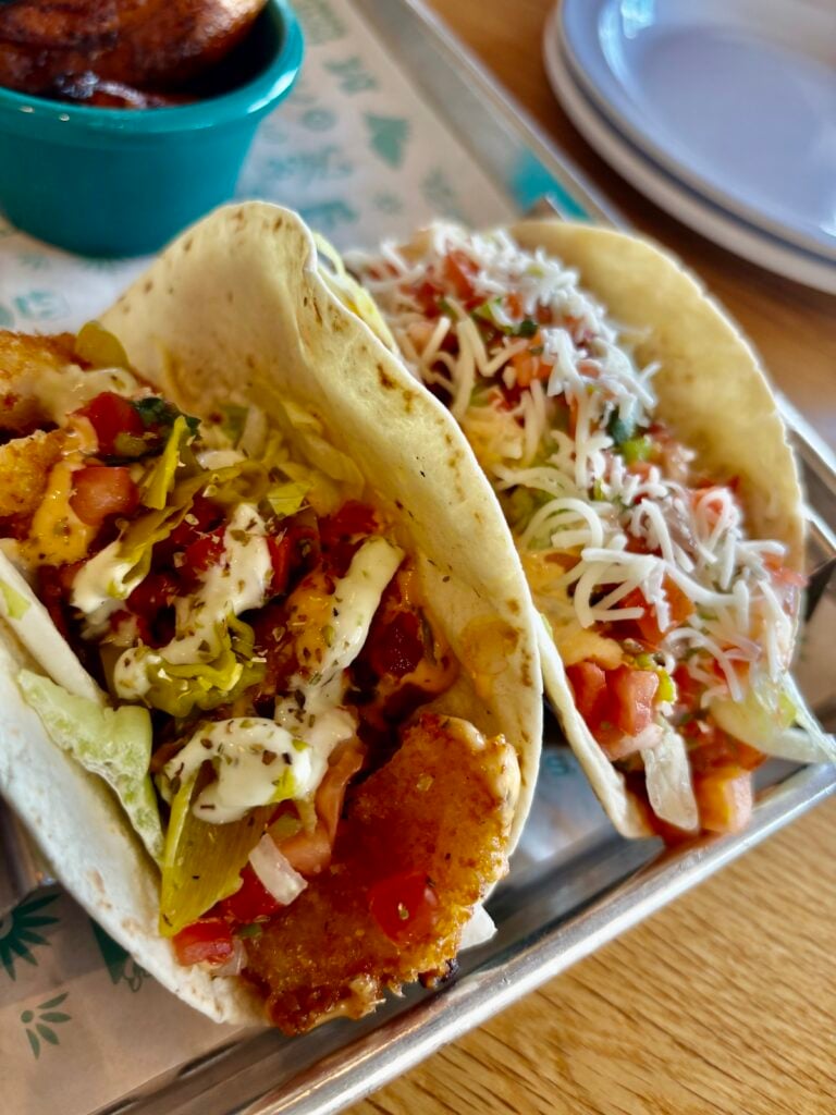 Craving tacos? Head to Taco Mamacita. I started with their famous Mexican Street Corn, which was creamy, cheesy, and a little spicy. For my main, I ordered two tacos with a side of plantains.